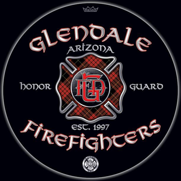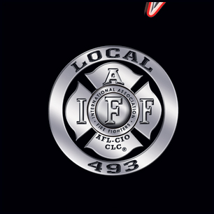 |  | Here's the new look. All previously textured surfaces are now metal-smooth. The image has been moved up a bit to make room for the IAFF emblem at the bottom...Remo crown now moved to the top. The depth of the outside type has been tightened up. The closeups show comparisons between the first treatment and this revision. The entire first version is at the bottom. |  |