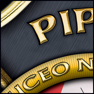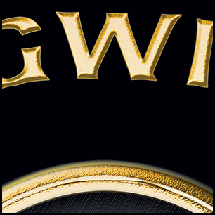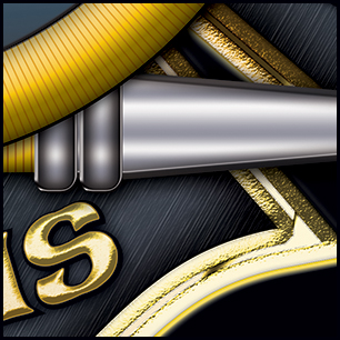 Here's your design with finishing effects, along with a few closeups. All the lettering is embossed and given a shiny gold finish, with a subtle hand-hammered texture. The maltese border is similar, but we've added a gold inlay along its center. The hose has a ribbed texture, with raised gold lettering. The hose nozzles are finished in silver metal. The maltese petals have a richer color than the dark grey of the mockup, with a brushed texture that has some minor discoloration. Finally, the Keeper is now more of a slate color, with highlights, which make it stand out more, particularly at a distance. He casts shadows on the hose, but not on the flag. The earlier mockups are posted below. | ||