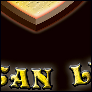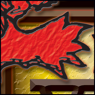 Here's your design with finishing effects, complete with closeups. If any colors appear washed out on your screen, it may be related to texturing and the way it converts for the web. The earlier version at the bottom may be showing truer colors; rich and full. The closeups reveal the glow, bevel and texturing of various elements. | ||