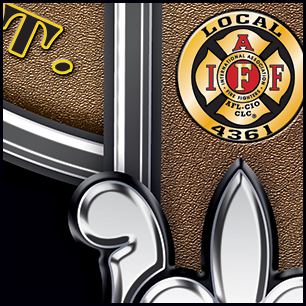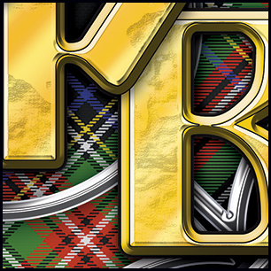 |  | Here's your design with finishing effects, and some closeups for detail. We went with very shiny-smooth silver, with some diagonal lighting across everything but the knotwork. The SFPB scramble in in a rich, blemished gold with a bevel trim. The belt has a leather texture, and we left the tartan untextured to keep the stitch detail sharp and clear. The belt-type is raised and embossed, the IAFF logo is embossed into the belt, and the outside knotwork has a frosted bevel. The earlier version is included at the bottom. |  |