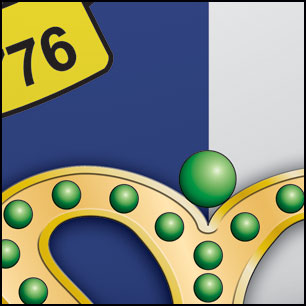 Things are looking pretty good. We compromised the shading of the flag at 50% of the previous darker version. We added the inscription on the heart; the metal-stamp look is clear, but at a distance it blends back into the shape of the heart. We've included a couple of closeups for you to see the details. | ||
