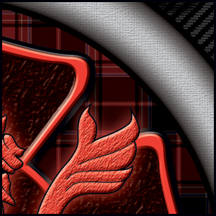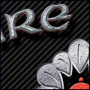 Here's the final on your design. A black outline has been added to the rounded parts of the maltese, the glow around the maltese is dropped, all textures have been removed from the hose and maltese black edges, the carbon-fiber background has been desaturated, and the hand-hammered look of the letters has been reworked. | ||