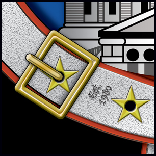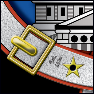 Here's the corrections to your design. The outside type has been repositioned, and the shading has been lightened a bit. The entire design is slightly larger. The buckle has been corrected; it just made sense to add the belthole, and the stem is now thinner and has a color and bevel more in style with the buckle itself. Both the finish file and the vector redraw file have been updated. The original finishing files are posted below. | ||