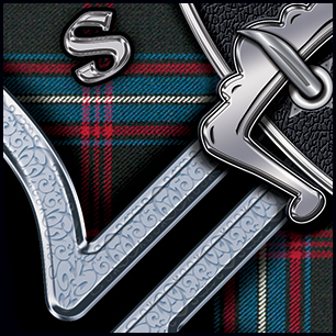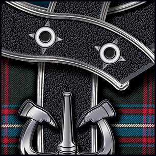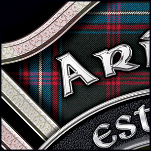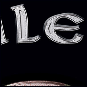 Here's your design with finishing effects, and some closeups for detail. Overall, the look is smooth, shiney metal. The outside type has a bit of a hand-tooled look, with a very slight texture. The maltese border has a very subtle color shift, borrowed from the Arizona flag, (yellow-orange on top, blue on bottom), and the scroll-trim has a stamped quality as opposed to being embossed up or down. Other effects have been added where appropriate. The pre-finished version is posted at the bottom. | ||