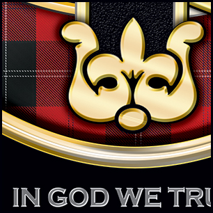 Here's your design with finishing effects, along with a few closeups. The outside lettering is double-embossed to create a metallic effect. The outer stripes are embossed as well. The maltese border has a highlight trim along it's center, all embossed for the metallic effect. The tartan has shadowing and highlights blended in, and the belt body now has a faux-leather texture. The FTD logo has subtle adjustments, so it retains its original character. The "FTD" is a brighter, warmer gold, which draws your eye as the focal point. The lettering on the banners are engraved, but stay dark enough that it's easily readable. The banners have a soft flowing texture. The "In God We Trust" lettering is backlit to pop out against the background. Dropshadows occur throughout the artwork where appropriate. The earlier version is posted at the bottom. | ||