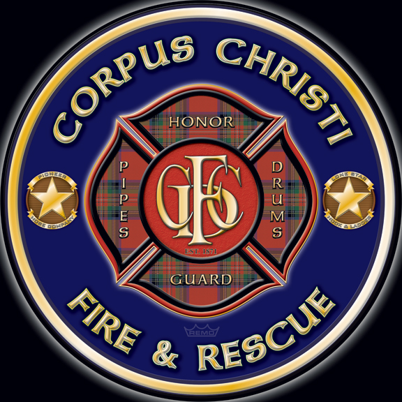(The first image below is the final, approved version. The streaks in the blue background have been removed) Here's the latest. The outer text has been changed to "Fire Rescue", and the red outline on the letters is an improvement. The tartan's color has been enriched, with some very subtle light shades blended in. A texture has been added to the background blue, giving it a deeper color, which makes the star and lettering stand out. The earlier version is posted at the bottom for comparison. | ||
