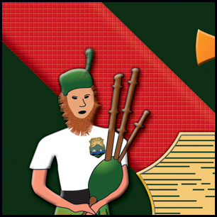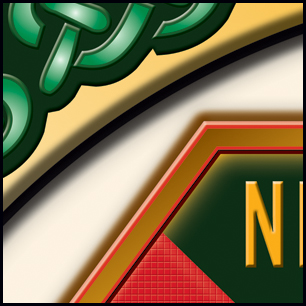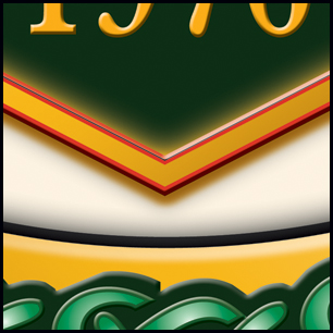 Here's a bit of finishing added to your design, with some closeups to see the drama. We pretty much stayed away from textures, with the exception of the weave on the red straps. Shadow, bevel and emboss have been blended in to give the graphic some depth. The earlier version is at the bottom for comparison. | ||