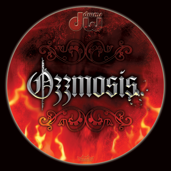 Here's the new head...awesome! The DW is again sampled from the background, as is the Remo crown. Both have been given a glow, or they'd disappear. Perhaps the DW looks a little bright, but we can tone that down if you'd prefer. The DW holes are not indicated here, but will be plotted on the final print. They'll fit comfortably. Great file, Jim! | ||