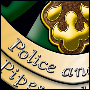 Here's your design with finishing effects. We've added a slight texture to the background behind the belt;it will be less obvious on the final print. The belt has a leather texture. the banners have a slight "wave" texture, and the embossed banner type is easily readable. We took a quick look at red and blue type, but it seemed out of place, as the colors don't blend with the gold-green tone of the design, and it made little if any impact on the readability. An earlier post is at the bottom; please excuse the weird artifact on the belt buckle. | ||