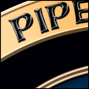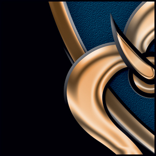 Here's finishing touches, complete with some close-ups. All the metallic items have depth and shine. The "Police" type has the look of polished ebony. The belt has a leather texture and the clasp shows spectacular highlights. The center "scales" design is completely blended to a unified whole. The smaller pic of the head gives you an idea of how it will look at a distance; clear and easily readable. An earlier post is below. NOTE: We've edited the round belt trim so the highlights are more even. The earlier post has a bevel that makes the edging appear dented. | ||