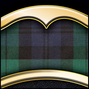 Here's your file with finishing effects, and a couple of closeups for detail. The tartan is unchanged from the last, pre-finishing version; It fits so well in this setting. We tried adding folds, but it breaks up the clean lines of the maltese, and makes it look uneven. The metallic effects on the type is borrowed from Coral Springs, but the differences in fonts required a little adjustment. The textures are similar to Alberta's, although we added no textures to the metal parts, to give them a smooth, polished appearance. The scramble came out beautiful, and there's some great interplay where it all comes together over the lower maltese area. The previous post is displayed at the bottom. | ||