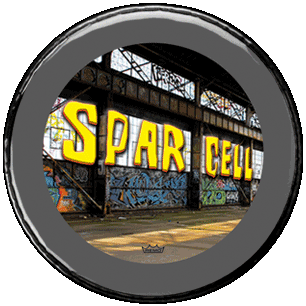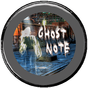 Here's your mockups. On "Ghost Note", we wanted to feature the figure, so we offset the ghosted lettering, and made the background get darker in the distance. The letters are beveled a bit, in addition to the slight blur effect. With "Spar Cell", we chose a part of the graphic that had dimension, but would be subtle enough to support type that fell within the perspective, while keeping it fairly readable. The bright yellow makes it easier to see, and the font fits with the graffiti on the dumpsters. The grey ring represents the P3 ring...the images won't bleed under the ring. | ||