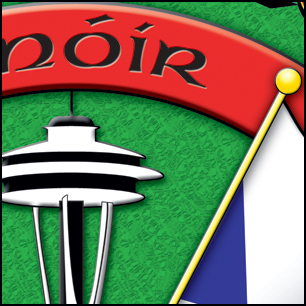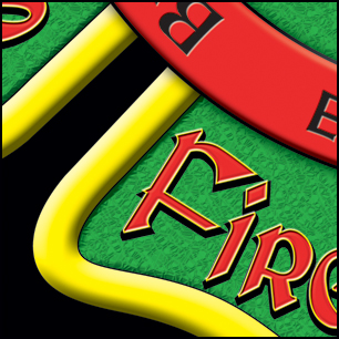 Here's your finished design. The full shot shows that the logo remains vibrant and readable even when viewed at a distance, while the closeups show some of the detail work. We've added a suble grassy texture to the green background, and a slight rocky texture to the outer lettering. The red lettering has a nice gold edge, while the black lettering appears recessed into he red band. The flags have a slight shadow added for depth. These elements have come together beautifully! The earlier file is posted at the bottom. | ||