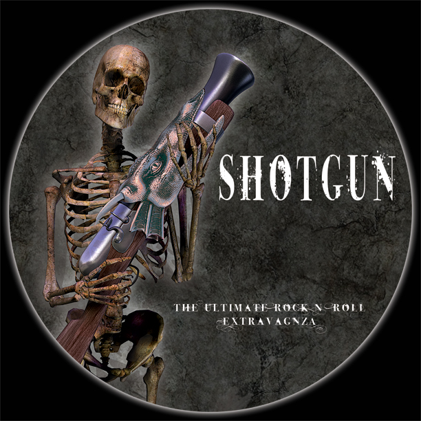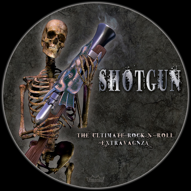 Here's the minor adjustments we've made. The logo is now in chrome, an improvement over the white version, and the "Ultimate" type is taller, with a slight drop shadow and slight orange overtones. The smoke has been added, drifting behind and along the barrel. We like it! Minor adjustments have been made to lighting, color...also fixed the left arm bone position. Earlier post is toward the bottom. | ||