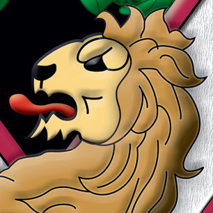 The top two pictures are a new revision, in which we've worked the lion a bit. All other elements are unchanged from the last version. The lion body is now a uniform color, with a darker mane. We went fairly dark because of the light background, and the need to have distinct highlight and shadow within the colorspace. The body and platform have similar depth added. Earlier versions are poswted below for comparison. | ||