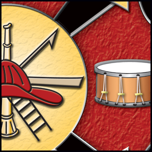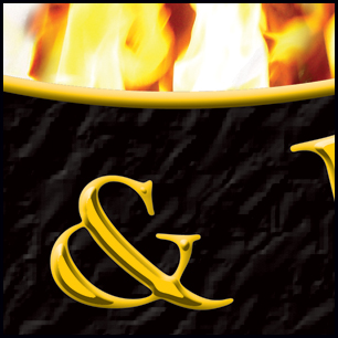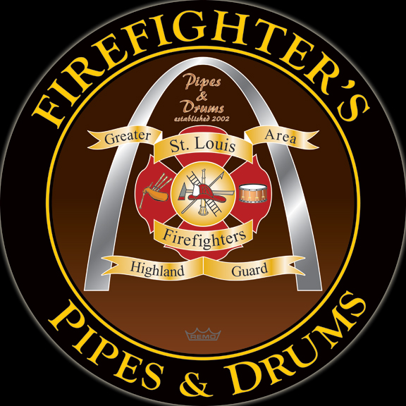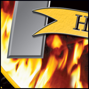 Here's our finish file, with and without fire. We deconstructed your logo and added some depth and texture to a number of elements. The closeups show the bevel of the arch, the silver edging on the banner, the banner's subtle texture, the bevel on the gold ring, the engraved outer lettering, (&), the textures and depth added to the central elements, and the beveling of "Pipe & Drums" in the central area. Also, there's a rocky texture on the outer black ring where the outer letters reside, but no texture behind the actual logo. It gives the impression that you're looking inside the head to see the logo. We dig the flames! The earlier version is posted at the bottom. | ||
