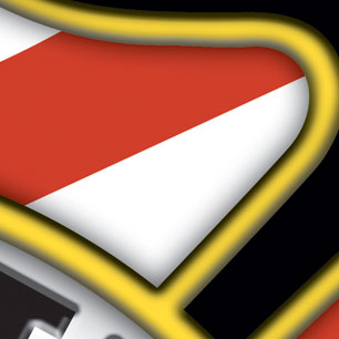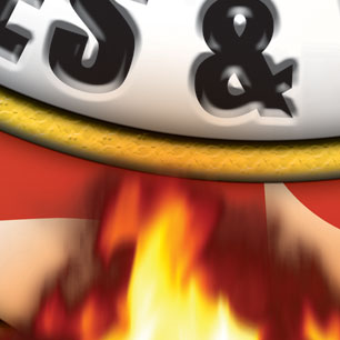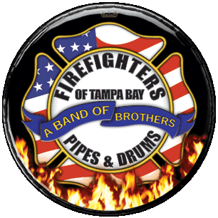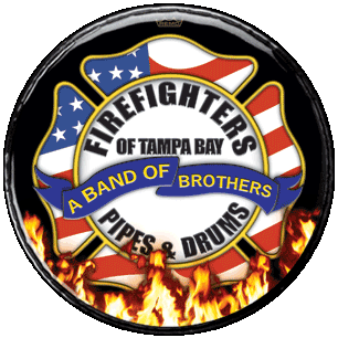 Here's the rework of your design. The recent work is in the left column, with the earlier version alongside, to the right. We've adjusted the flames away from the "Pipes & Drums". You'll notice in the closeup that we've blurred them to look more natural. We've added a soft texture, to simulate gold leaf, into the borders and the banner lettering. We've done a little stronger shadowing on both as well. The blue in the flag is richer, ande we've added a little shading in the flaps of the banner. Overall, the colors look a bit washed out, but expect the print version will be more vibrant. | ||