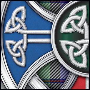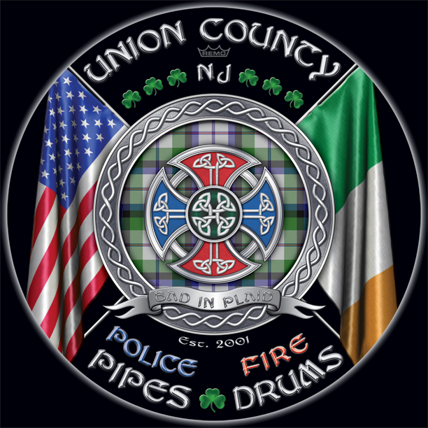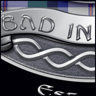 Here's your design with finishing effects, along with closeups of some of the detail. Most of the metallic elements were made as smooth metal, with the exception of the knots in the cross, which have a slight hand-hammered look. This includes the blue police and red fire metallics. The tartan colors have been deepened, and in general, colors will print deeper and fuller on the head than what you may see on you computer monitor. The earlier mockup is posted below. | ||