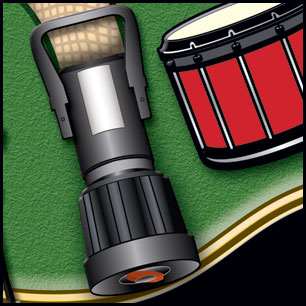 Here's your design with finishing touches. The colors look a little pale in these comps, but the final print will be rich and full-bodied. We kept textures to a minimum, only adding a subtle pebble texture to the maltese, and a cross-hatch texture to the hose. Bevel and shadows are present throughout the design. The closeups show samples of the detail. The earlier post is at the bottom. | ||